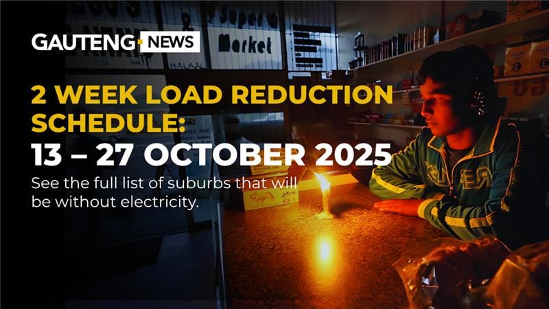 Plan better with the Gauteng 2 Week Load Reduction Schedule: 13 – 27 October 2025.