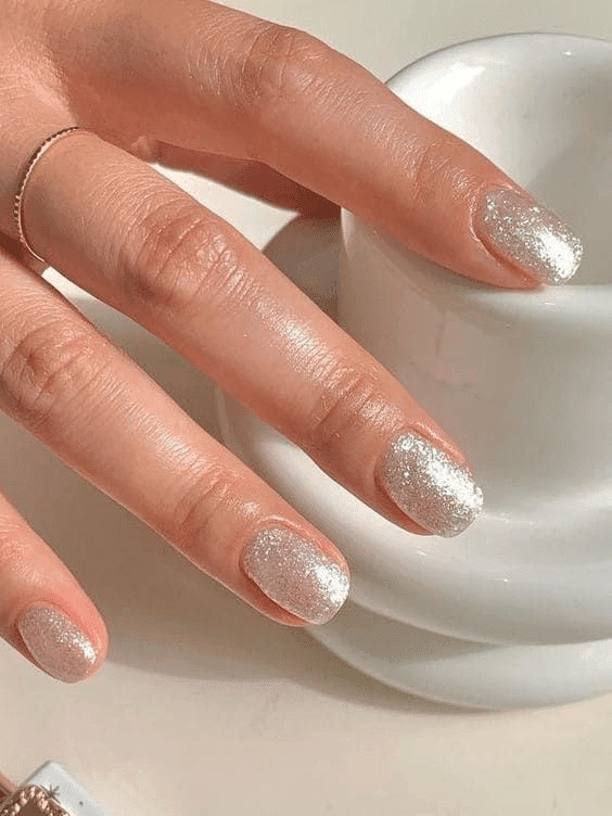 Silver glitter is a staple of the holiday season. Use it to add a shimmery finish over blacks and blues.
