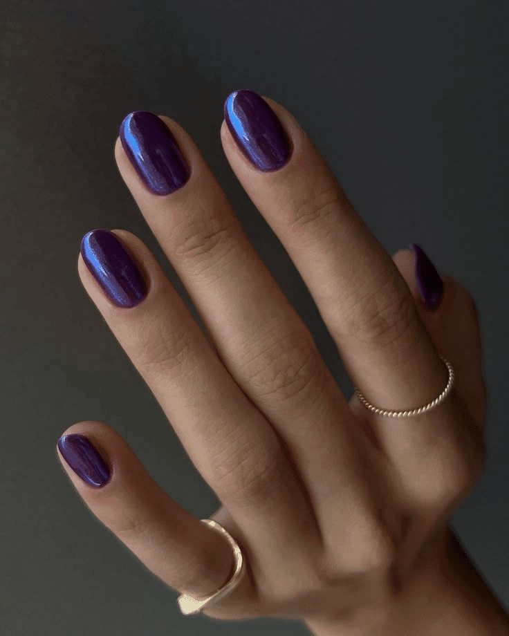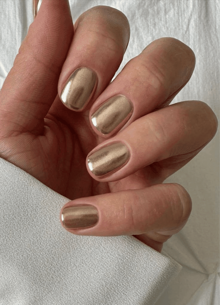 This season, gold, rose-gold, and chrome-silver polishes shine brightly. Metallic nails are easy to wear with jewelry and reflect light.
