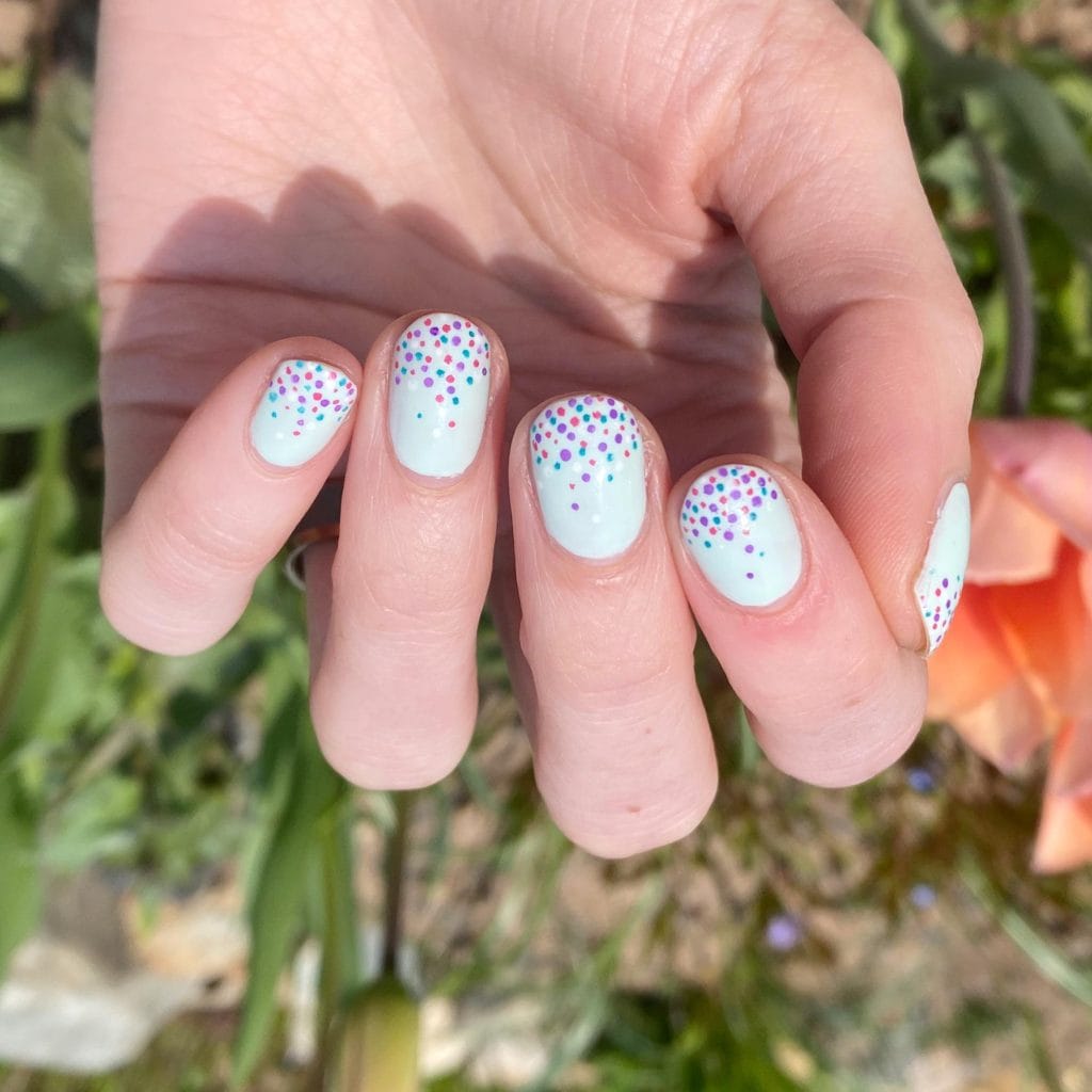 11. Dots and Stripes Simple dots and stripes can create a fun and playful look on short nails. Combine different colors and sizes for a custom design.