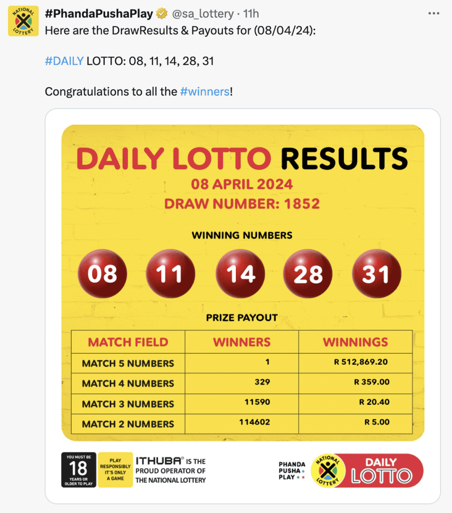 Also check: Ithuba Daily Lotto Results for 7 April 2024