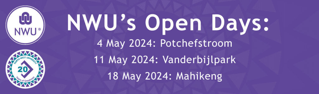• Highlights: Discover NWU’s multi-campus system, enjoy performances by the university choir and sports demonstrations.