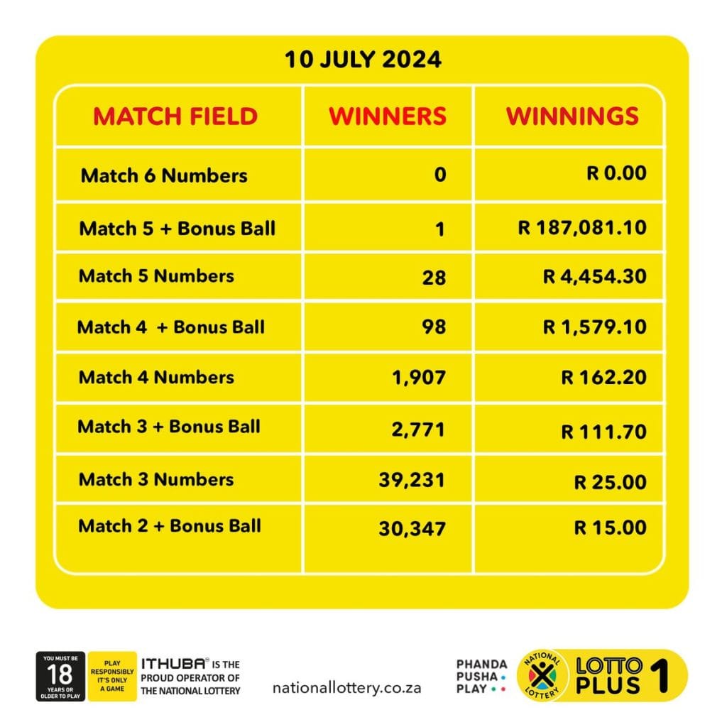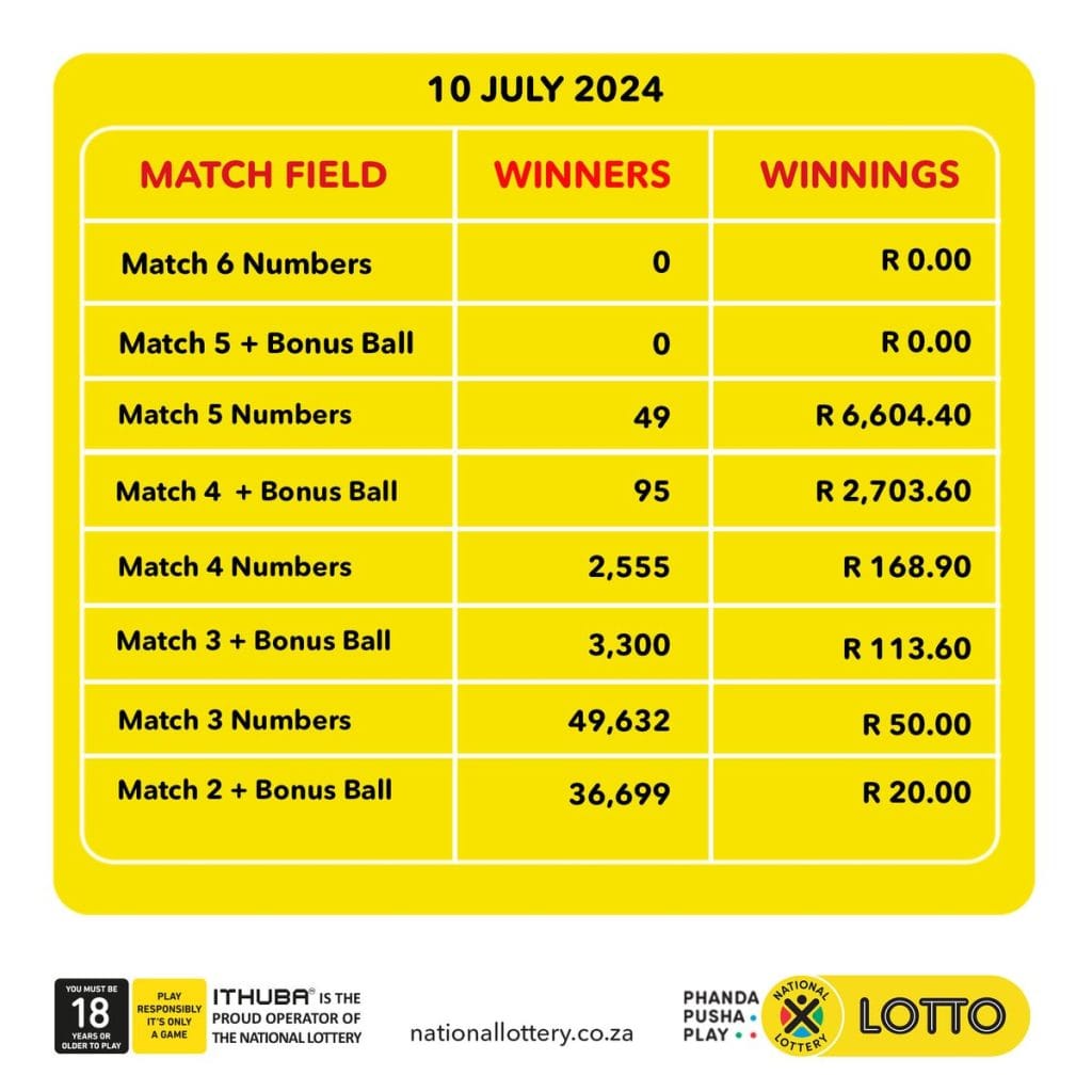 Congratulations to the Lotto Winners. The winning lotto numbers for the Lotto draw on 10 July 2024 are as follows: