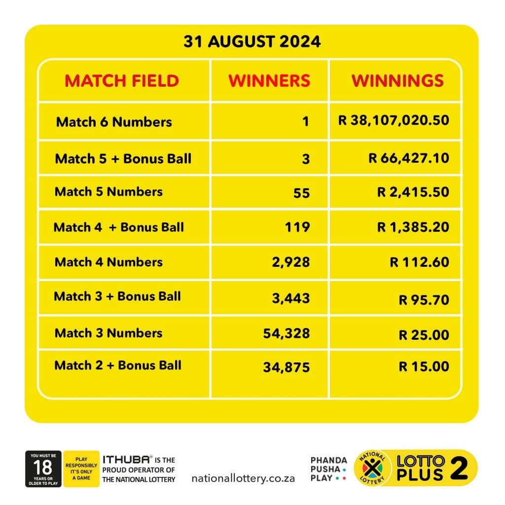 We extend our heartfelt congratulations to all the winners of the lotto draw for 31 August 2024. Your participation makes these events exciting and contributes to the positive impact of the National Lottery’s initiatives across the country. Keep your hopes high and your tickets ready for the next draw!