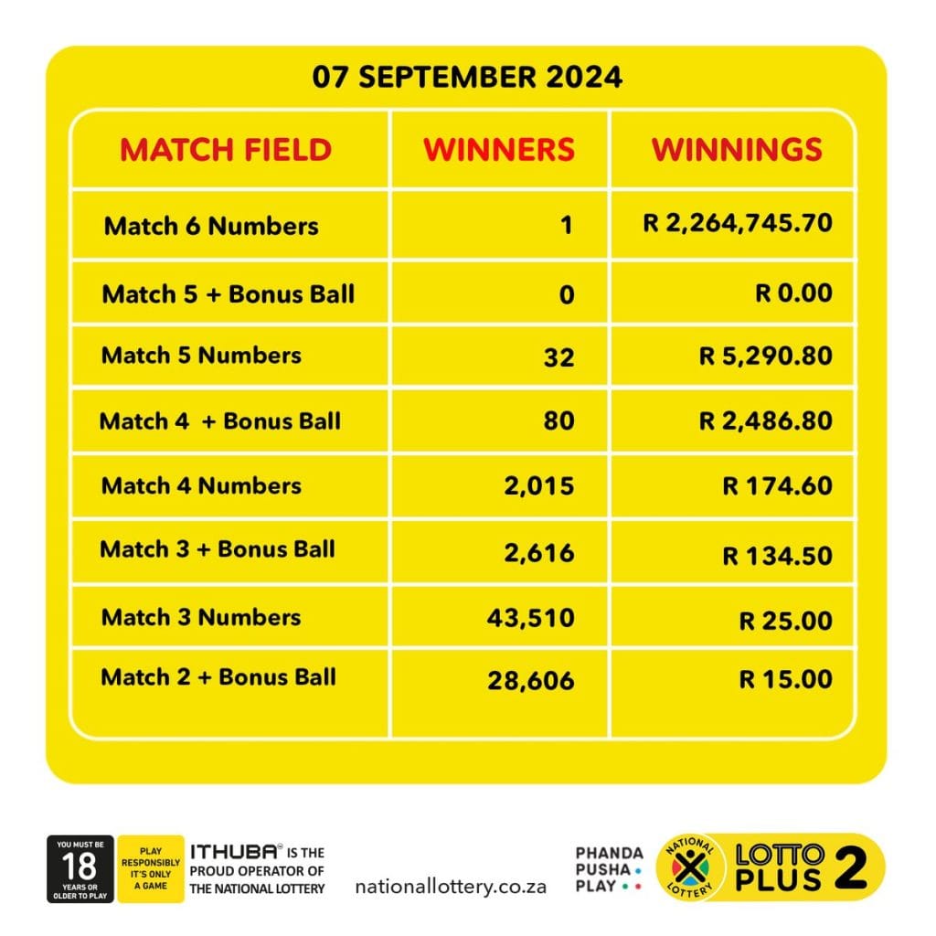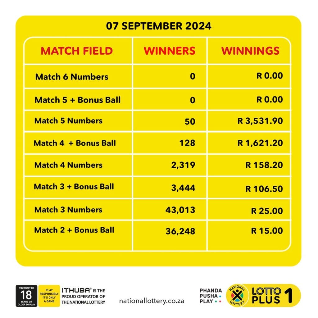 Congratulations to the Lotto Winners. The winning lotto numbers for the Lotto draw on 07 September 2024 are as follows: