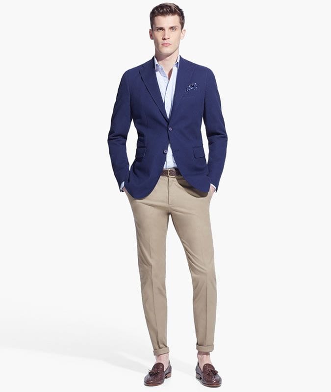 For a laid-back wedding, a sports coat paired with chinos offers a relaxed yet refined look. Choose a dress shirt to elevate the style.