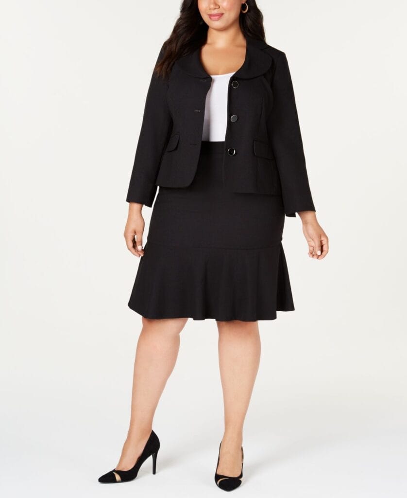 A flared skirt suit adds movement and femininity to your corporate wardrobe. Pair it with a fitted blazer for a balanced and sophisticated look.