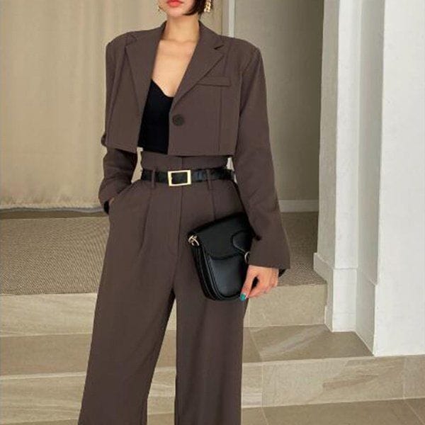 For a modern twist on the traditional suit, go for a cropped blazer paired with high-waisted trousers. This combination flatters the waistline while maintaining a professional edge.
