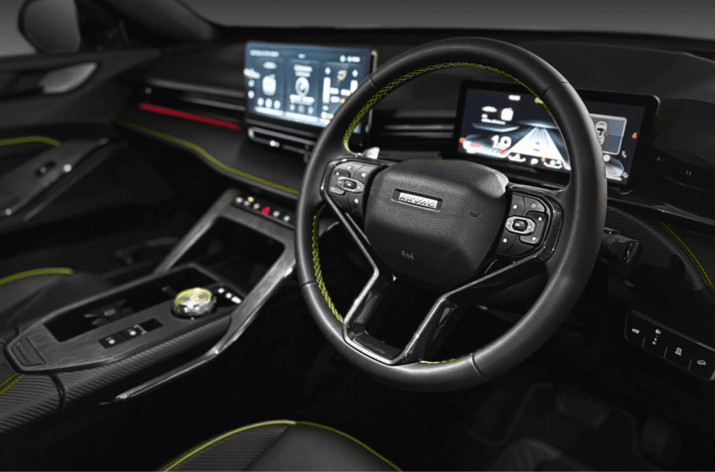 The cabin of the H6 GT has received several enhancements aimed at creating a sophisticated and comfortable environment. The seats are upholstered in premium Alcantara, with the steering wheel wrapped in soft-touch synthetic leather, adding a layer of refinement. Carbon-fibre-inspired accents contribute to the premium feel, and heated front seats ensure added comfort on colder days.