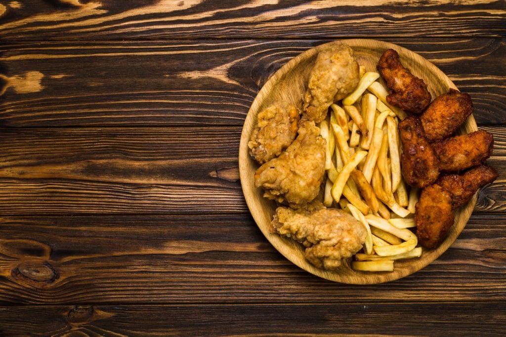 - Fast food like fried chicken, French fries, and fried fish