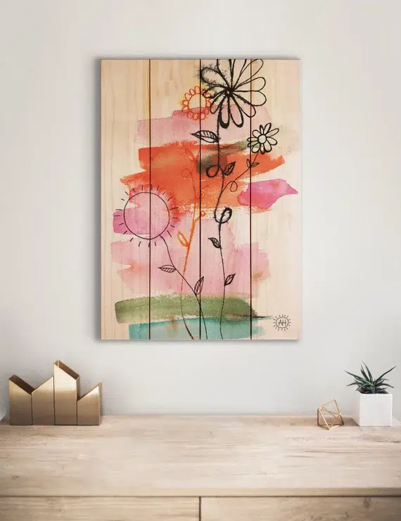 Repurpose wooden pallets by painting designs or quotes on them. Hang them for a rustic, personalized touch.