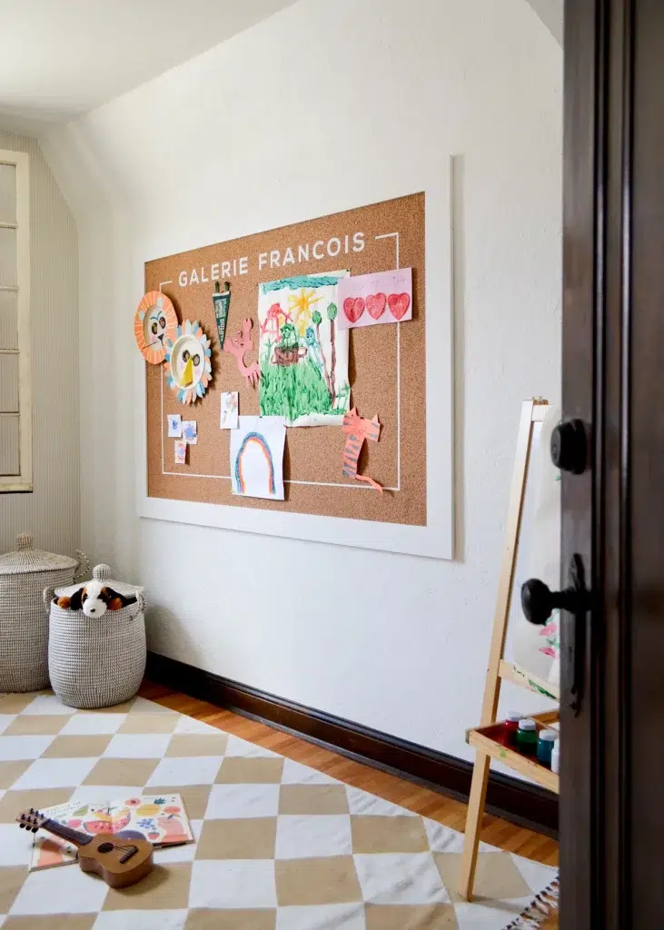 Paint corkboards and arrange them into a grid. Use them as functional art for pinning notes and photos.
