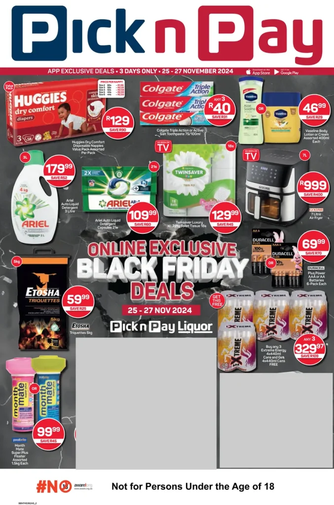 Pick n Pay Asap, the retailer’s quick delivery service, is renowned for providing convenience, and their Black Friday sale is no exception. For three days, shoppers can enjoy substantial discounts across various categories, including groceries, health and beauty products, and festive essentials.