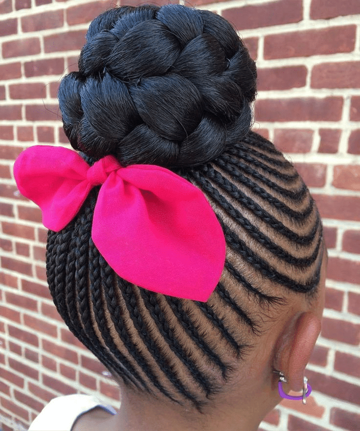For a classy and neat look, opt for straight-up braids that gather into a bun at the crown. This style is perfect for school and formal events.