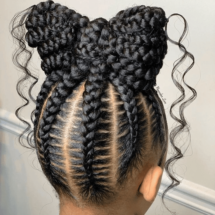 This traditional straight-up style features neatly woven braids going straight up from the scalp. It’s a low-maintenance and elegant choice that can last for weeks with proper care.