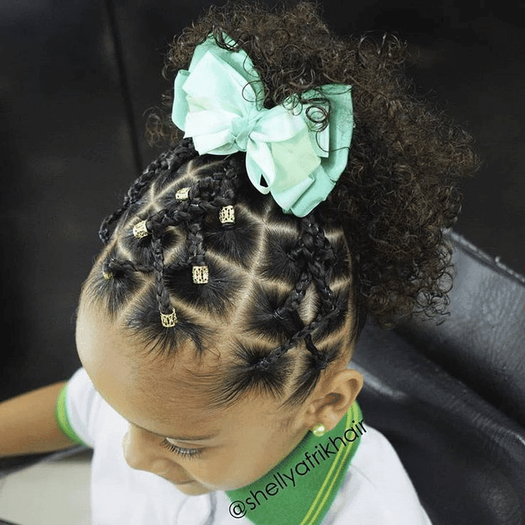 Give your little girl a bold look with braids that follow a Mohawk-inspired pattern. This style leaves some volume in the middle and is perfect for confident trendsetters.
