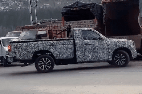 Further evidence of its test phase includes its extended wheelbase and the use of Scorpio-N alloy wheels. Additionally, the vehicle features a sport bar that appears to be borrowed from the existing Pik Up.