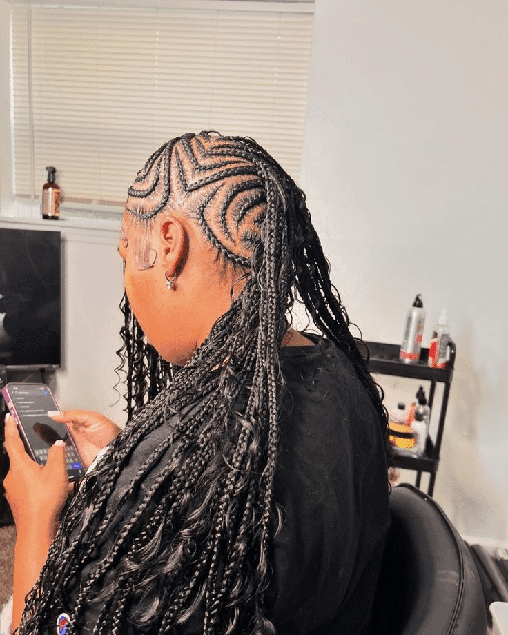 For those who love originality, freestyle cornrows are the ultimate creative expression. “With freestyle braids, no two styles are ever the same,” Kymba explains. Your braider will design a unique cornrow pattern based on the moment’s inspiration, making every installation one of a kind.