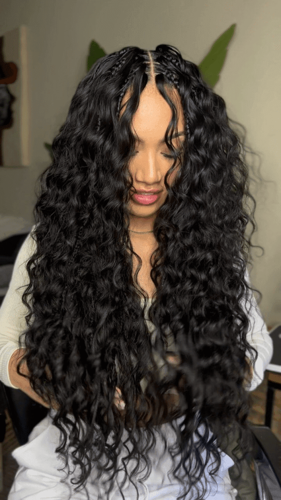 Inspired by goddess braids, Bora Bora braids incorporate even more loose curls for a fuller, more dramatic effect. “This was my most requested style in 2024, and the demand continues to rise in 2025,” says Peterson. For optimal fullness, she recommends placing curly pieces on the top part of the braids rather than the sides.
