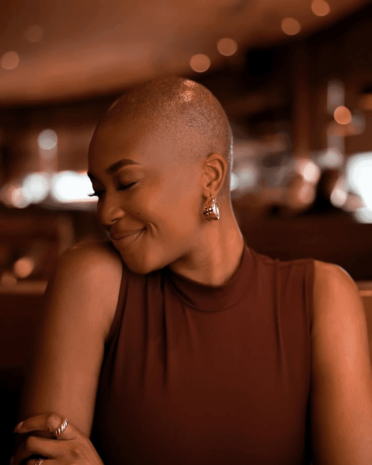 A bald head is a bold and empowering choice that exudes confidence and elegance. This haircut for women is perfect for those who want a low-maintenance yet striking look, emphasizing natural beauty and facial features.