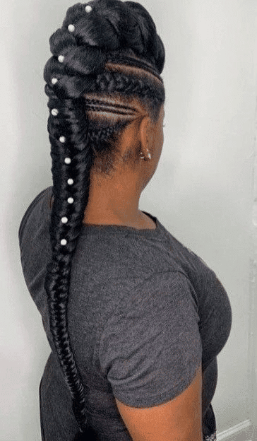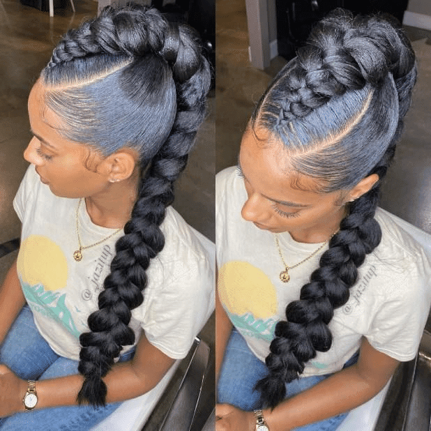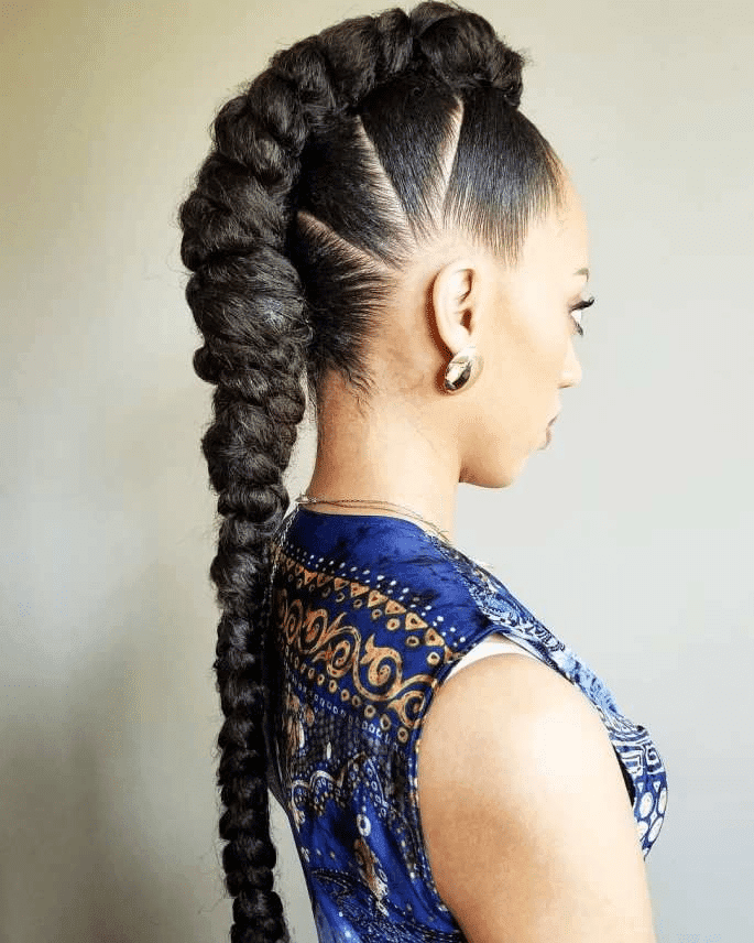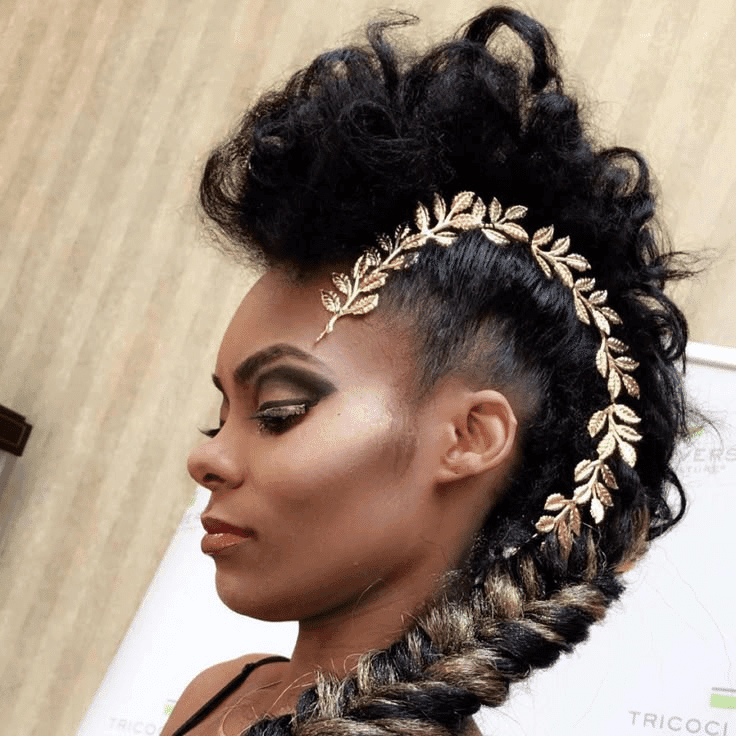 For a show-stopping style, opt for a braided pompadour mohawk. This look involves twisting and pinning braids into a voluminous updo, mimicking the height of a classic pompadour. To enhance the boldness, accessorize with statement jewelry or gold hairpieces.