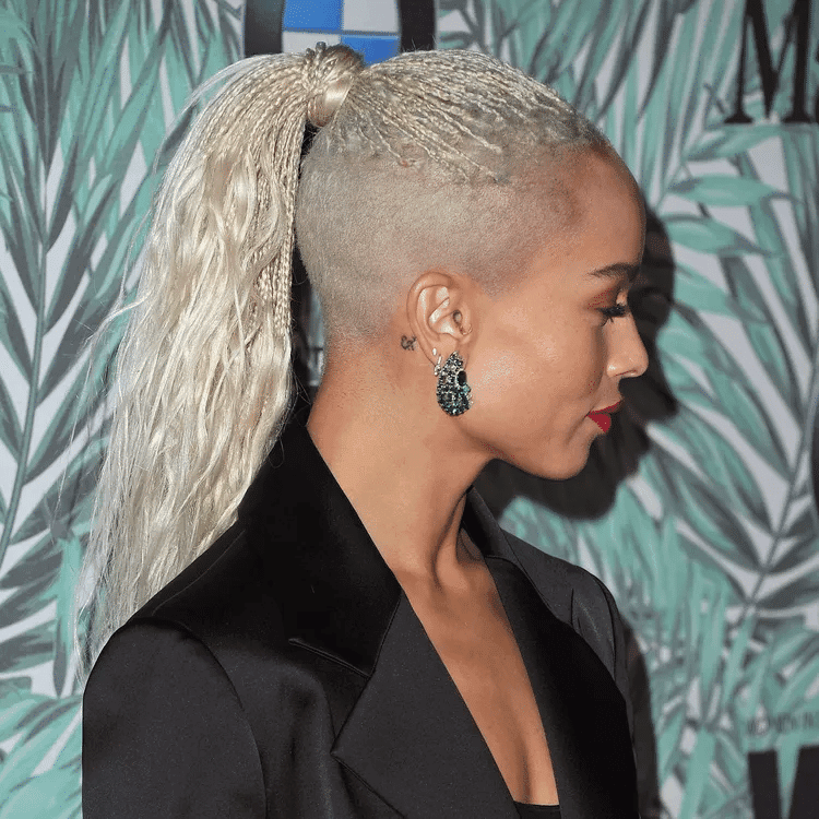 A high ponytail can create the illusion of a mohawk, especially when paired with micro braids. The contrast between the sleek, shaved sides and the voluminous ponytail makes this a striking and fashionable choice. Add a pop of color, like platinum blonde, for an extra bold effect.