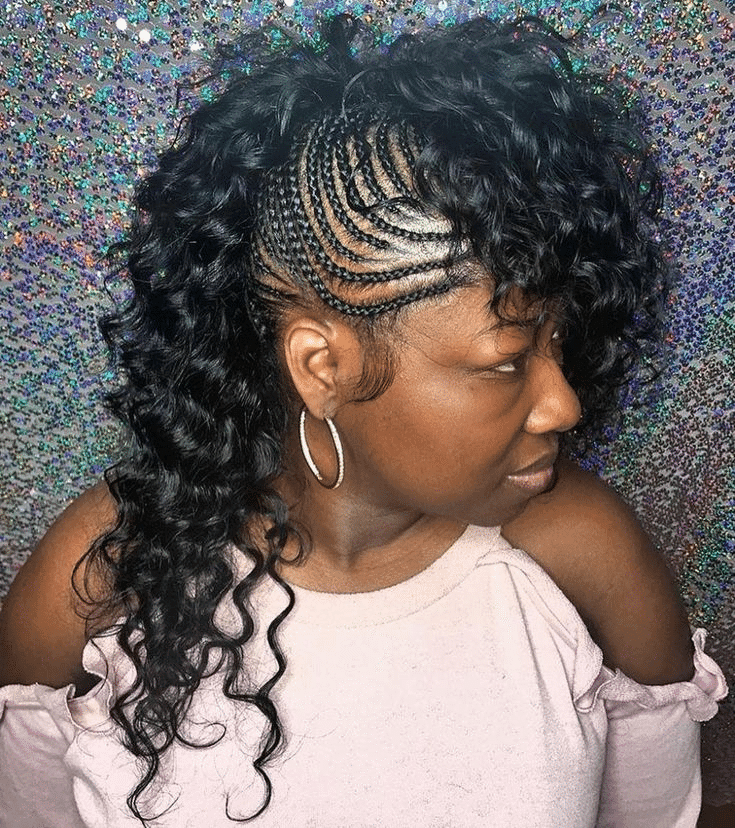 Cornrows can be styled into a mohawk for an effortlessly chic look. Once the braids are completed, curl the loose hair with a wand to create soft, bouncy ringlets, adding a touch of glamour.