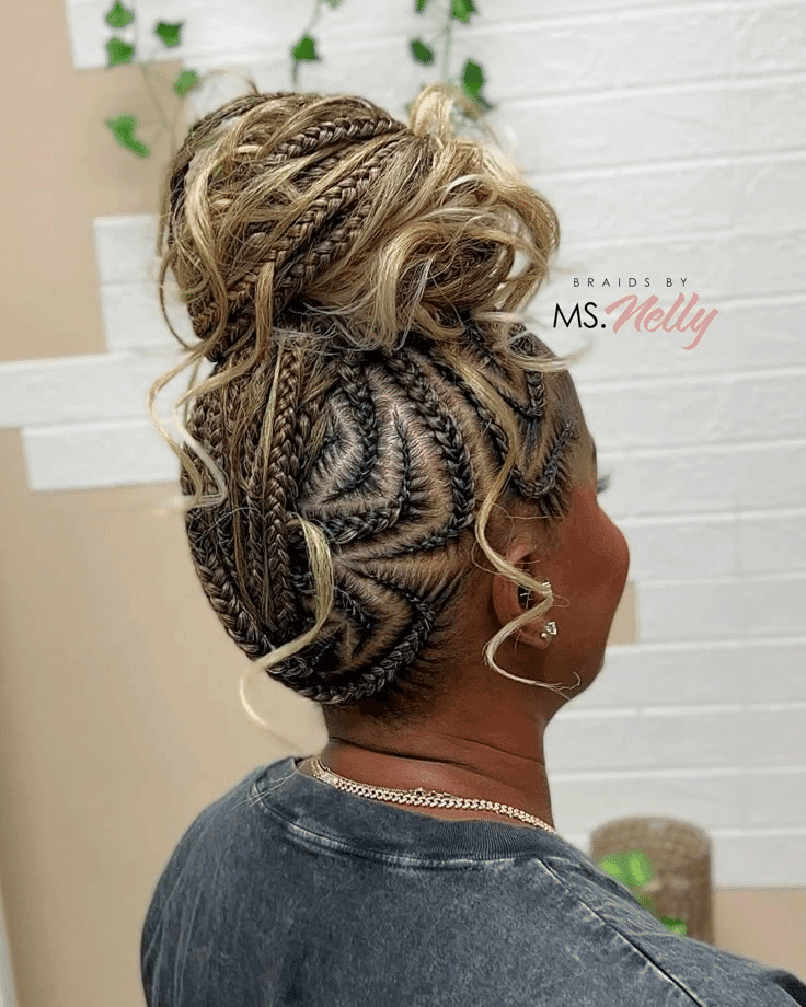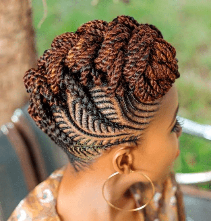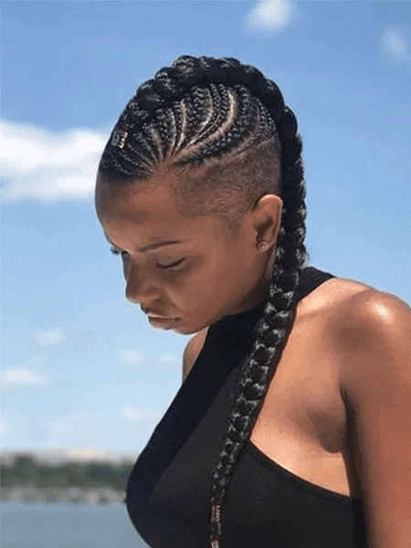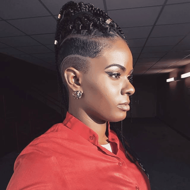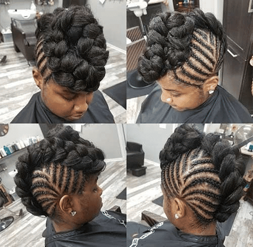 If you love intricate designs, this cornrow mohawk braid is a must-try. The combination of swirled braids in the front and straight-back cornrows on the sides adds dimension and creativity to the look.