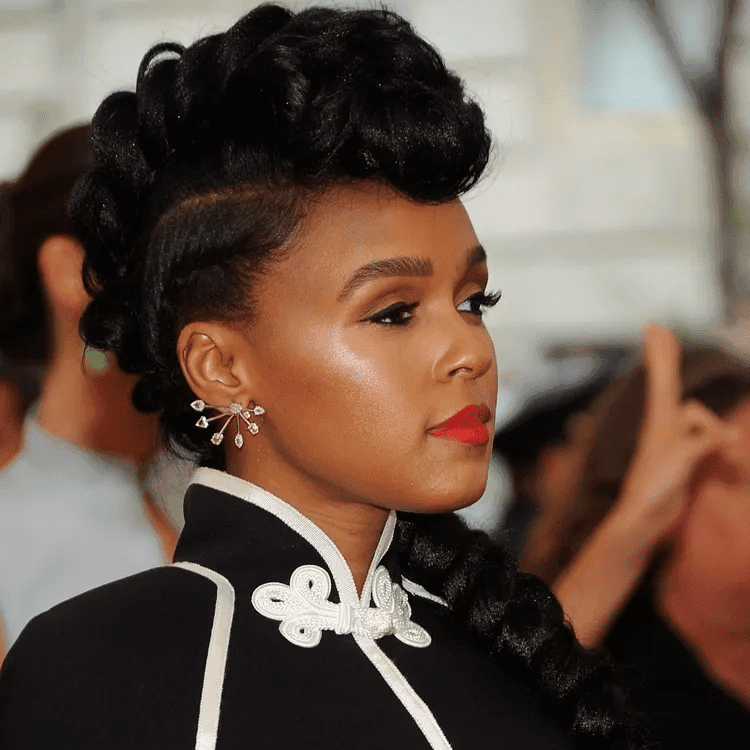Janelle Monáe has mastered the art of the faux mohawk, and this cascading braid style is a prime example. Flat twists at the front transition into a fluffy, free-flowing braid, creating a bold yet elegant finish.
