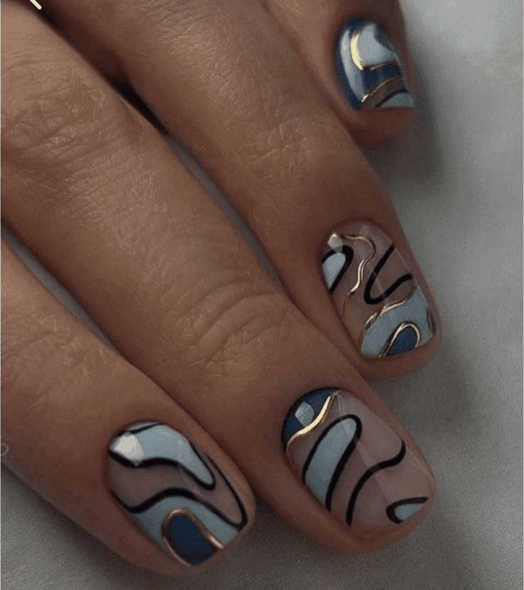 A classic favorite, marble nails mimic the intricate veining of real marble, using a mix of neutral and bold colors to create a luxurious effect.