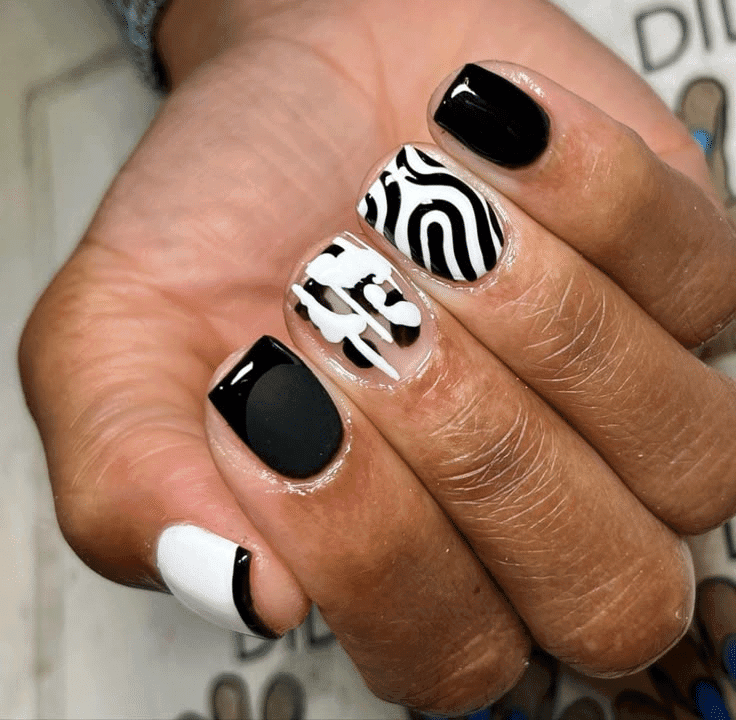 A contemporary favorite, abstract swirl designs use free-flowing lines and mix-and-match colors to create a dynamic, artsy effect on your nails.