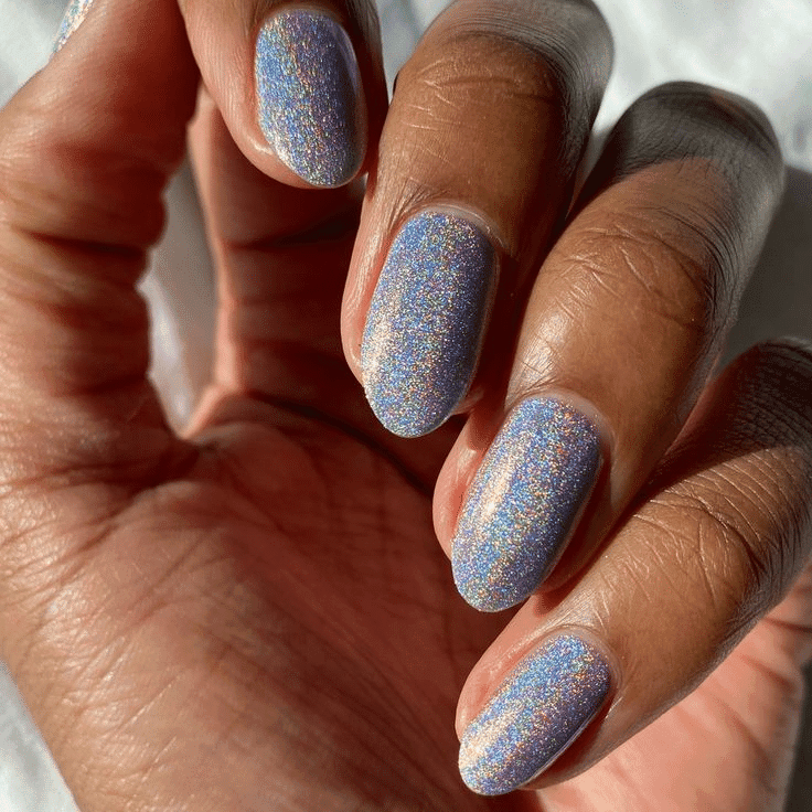 Shifting colors and light-reflecting pigments make holographic nails a futuristic and dazzling choice.