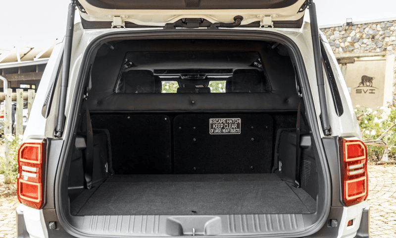 To balance cost and weight considerations, the armouring package includes an armoured rear bulkhead with an integrated escape hatch behind the second-row seats. Despite these modifications, all driver-assistance safety systems—such as those relying on sensors behind the windscreen—remain fully functional.