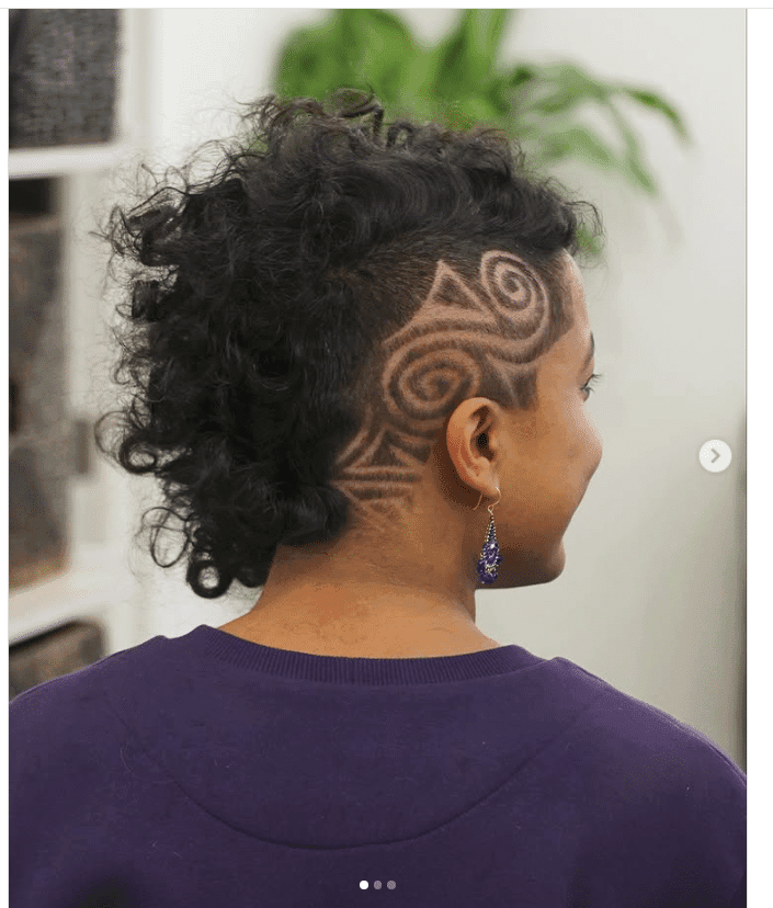 5. Mohawk Women’s Haircut with Side Freestyle Swirly Design