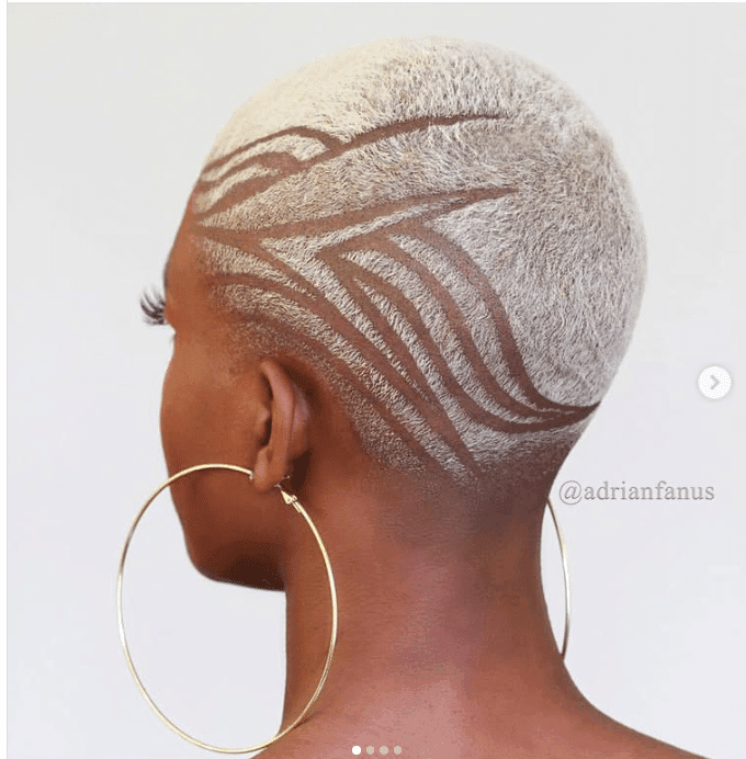 8. Black Women Haircut Designs – White Dyed Hair and Freestyle Line Design
