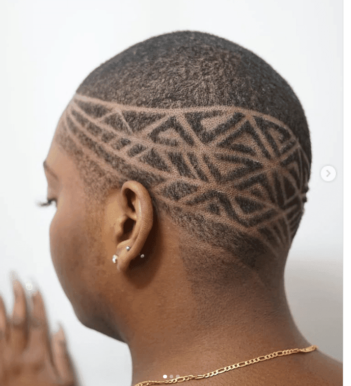 A one-level haircut is a timeless choice that exudes simplicity and elegance. When paired with an abstract flower design shaved into the side or back, it takes this classic cut to the next level. The design adds a creative flair without overwhelming the natural beauty of the haircut.