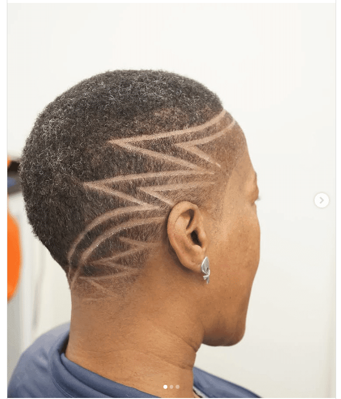 For a bold and funky touch, try the zigzag line design etched into a short fade or medium-length cut. This eye-catching design is perfect for women who want to stand out and showcase their personality through their hairstyle. It adds an edgy vibe to a simple cut, making it more dynamic and interesting.