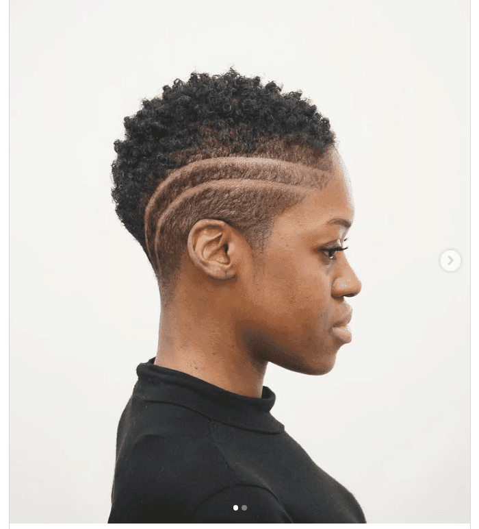 12. Curly Low Mohawk with Two Lines Design on the Side