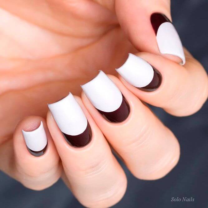 Also known as the half-moon manicure, this style features the traditional French tip at the base of the nail instead of the tip. On long nails, this unexpected design creates a bold and avant-garde statement.​