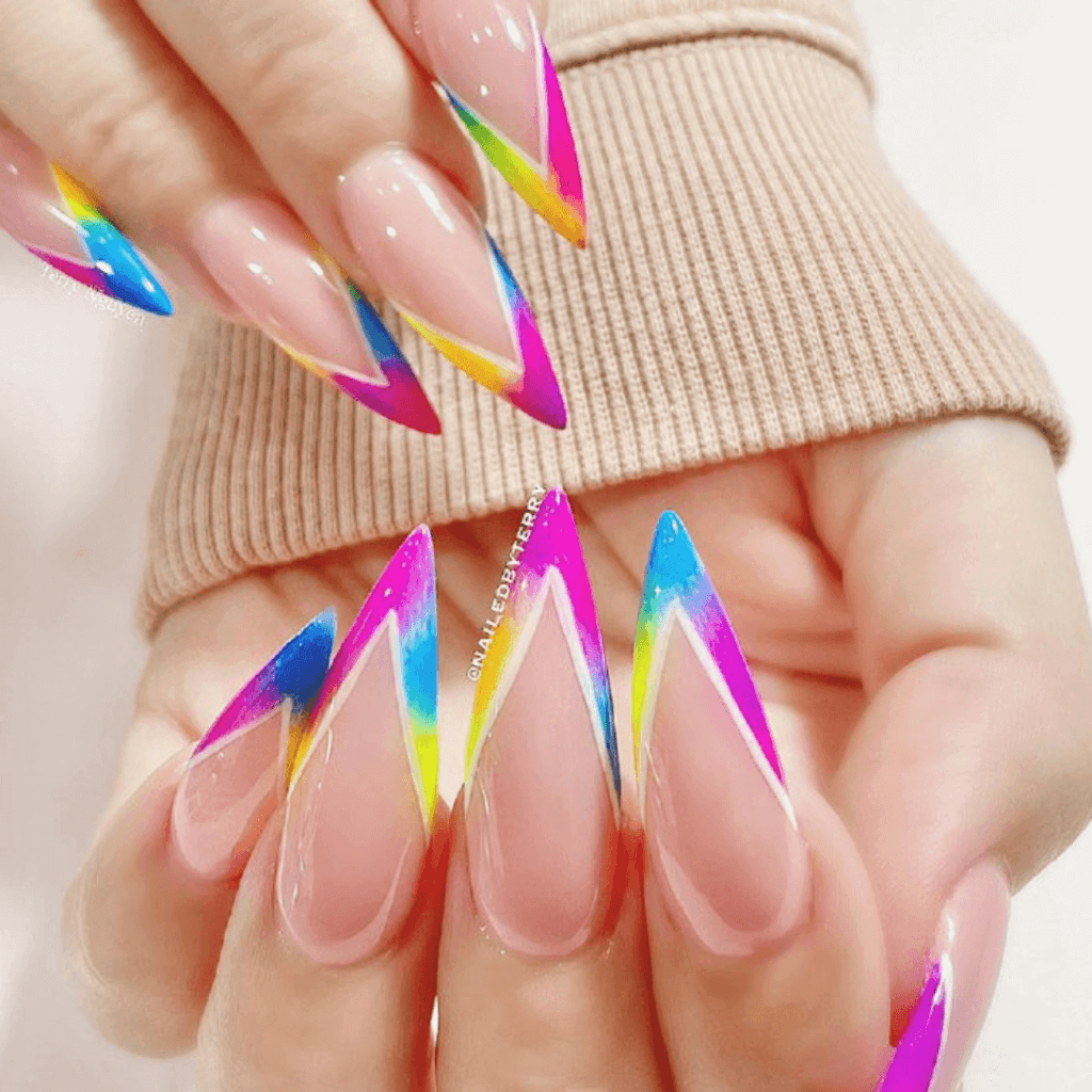 Break away from white tips and experiment with vibrant colours. Whether it’s pastel shades for a subtle look or bold hues for a statement, coloured tips can reflect your personality and mood.​
