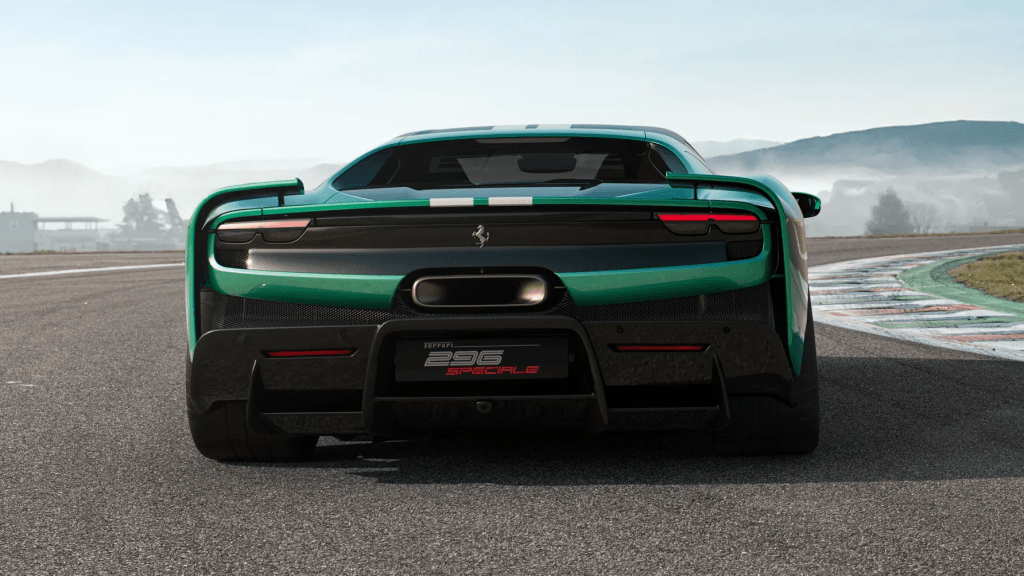 The 296 Speciale features extensive aerodynamic upgrades that both improve performance and give it a more aggressive stance. Key changes include a reprofiled front bumper with S-duct-style intakes, larger cooling vents, and a reworked rear diffuser. Active aerodynamic components have been added to improve airflow and increase stability at speed.