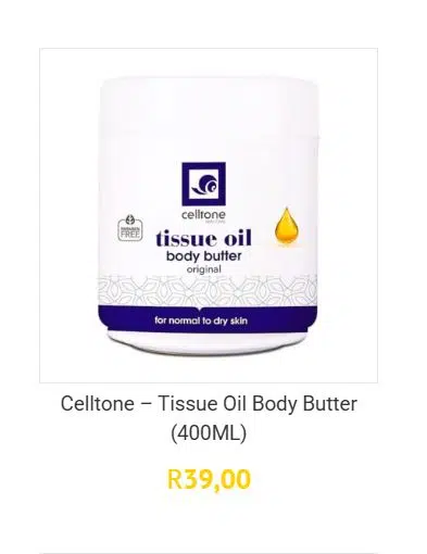 Treat your skin to luxurious moisture with Celltone Tissue Oil Body Butter (400ML) for just R39. This rich body butter helps fight dryness and improves skin tone, and it’s usually sold at double the price.