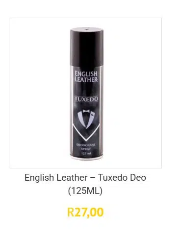 Looking for an affordable, masculine deodorant? The English Leather Tuxedo Deo (125ML) is going for only R27. It’s the perfect blend of affordability and classic scent.