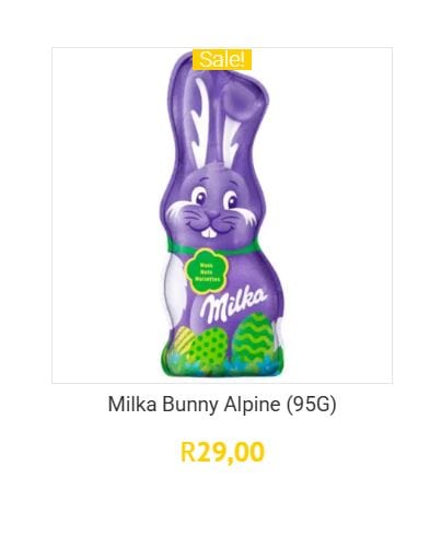 Even though Easter is over, the Milka Bunny Alpine (95G) is now just R29. Stock up on these premium European chocolates while they last.