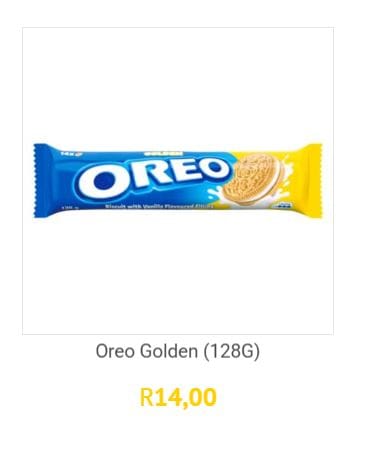 Oreo Golden (128G) are available for only R14 this week. These vanilla-flavoured biscuits offer a lighter twist on a classic treat.