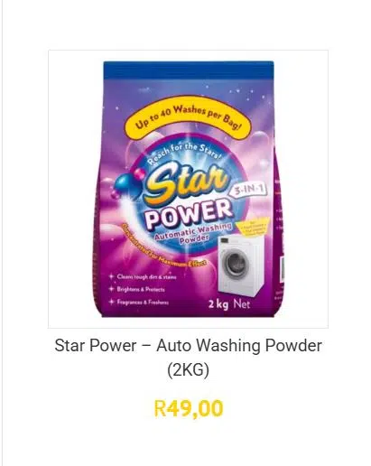 Get your laundry done with Star Power Auto Washing Powder (2KG) for just R49. This household essential is a cost-effective way to keep your clothes clean and fresh.