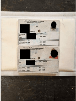 • A firearm licence not registered to any suspect