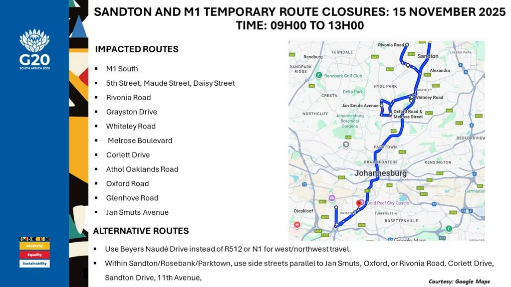 The G20 Summit is a significant global event, and its successful hosting reflects positively on Gauteng and South Africa. However, with the planned Saturday road closures and traffic alerts, it’s crucial to stay informed and flexible.