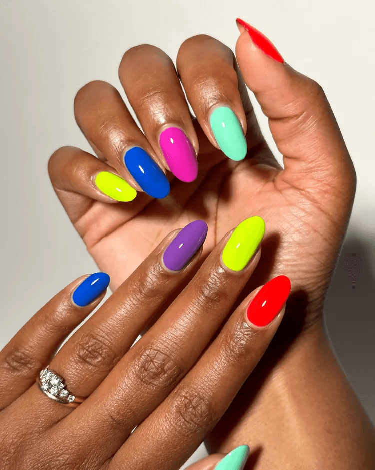 Celebrate Pride Month in style with bold, neon rainbow nails. These vibrant colours not only bring a burst of colour to the winter season but also express a sense of inclusion and love.