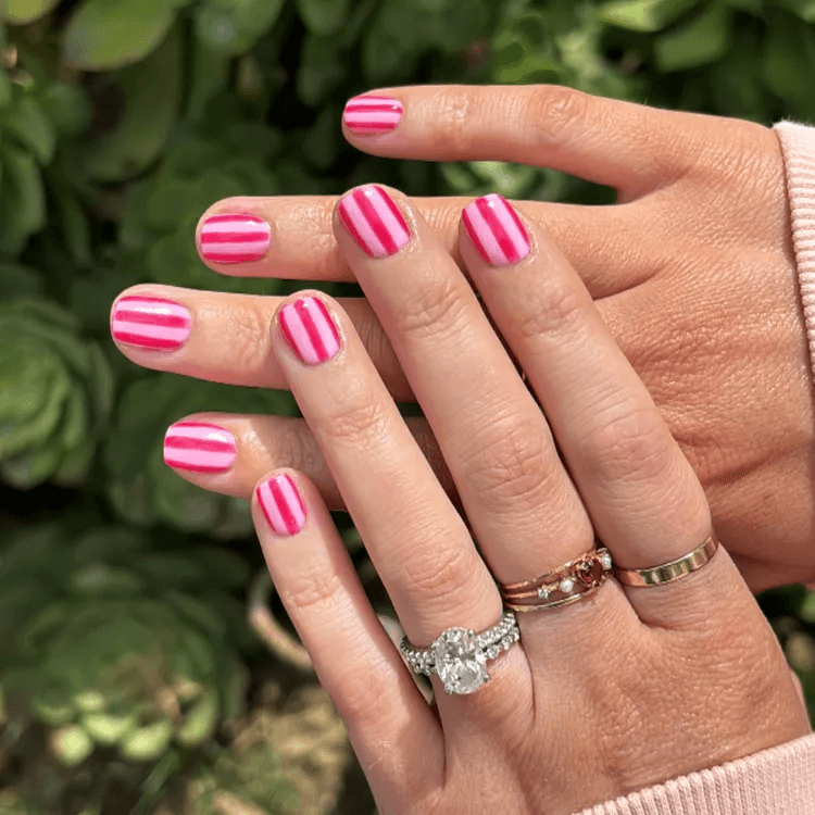 Stripes are not just for summer—they’re perfect for winter too. These sweet pink striped nails bring a vibrant touch to the colder months, making them ideal for a fun and spirited look. The candy-like design is sure to brighten your day.
